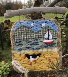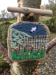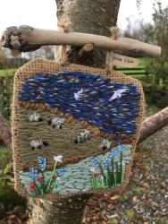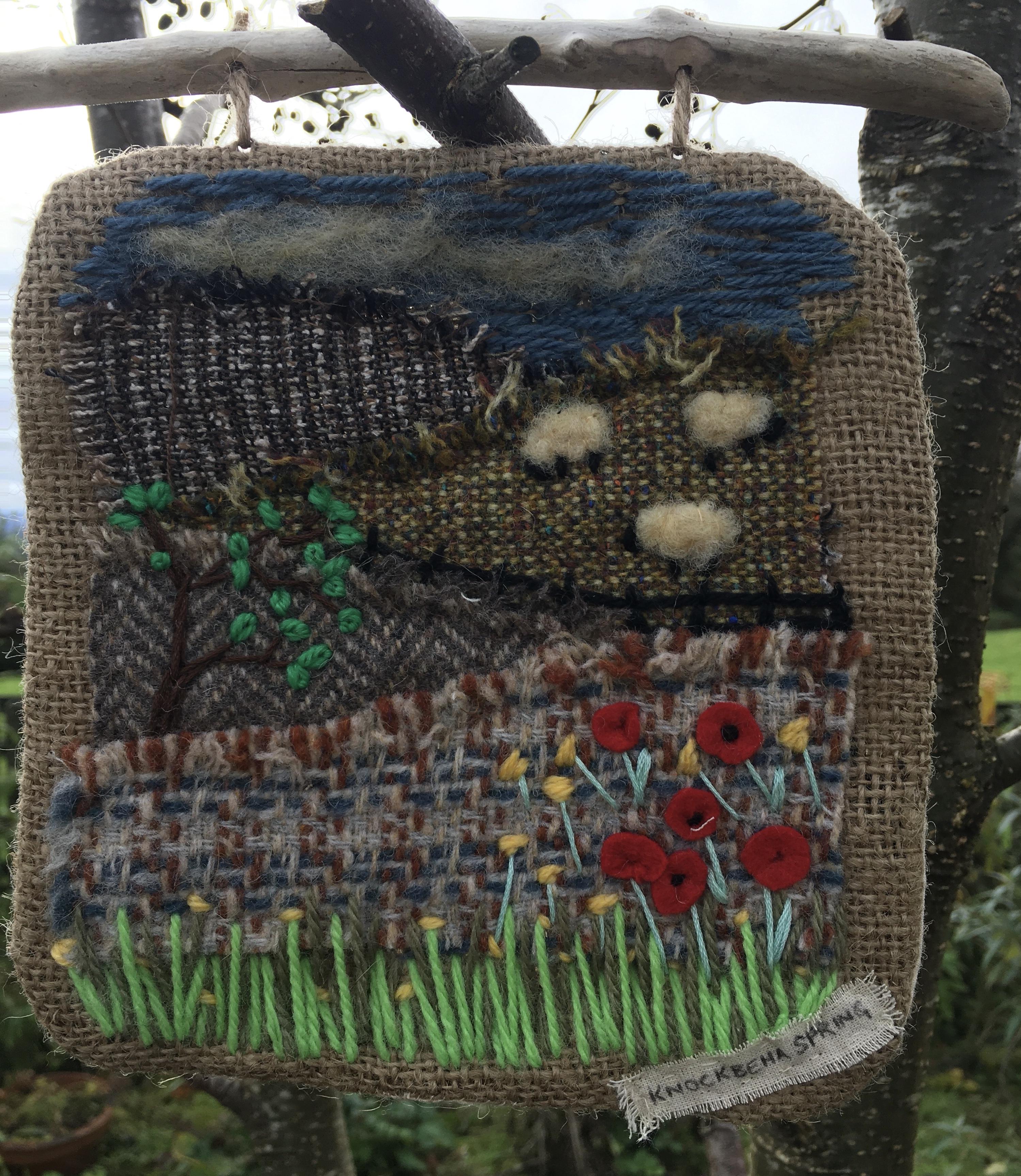 a sweet little tapestry, depicting a local scene and one of our Irish hares taking in the view.