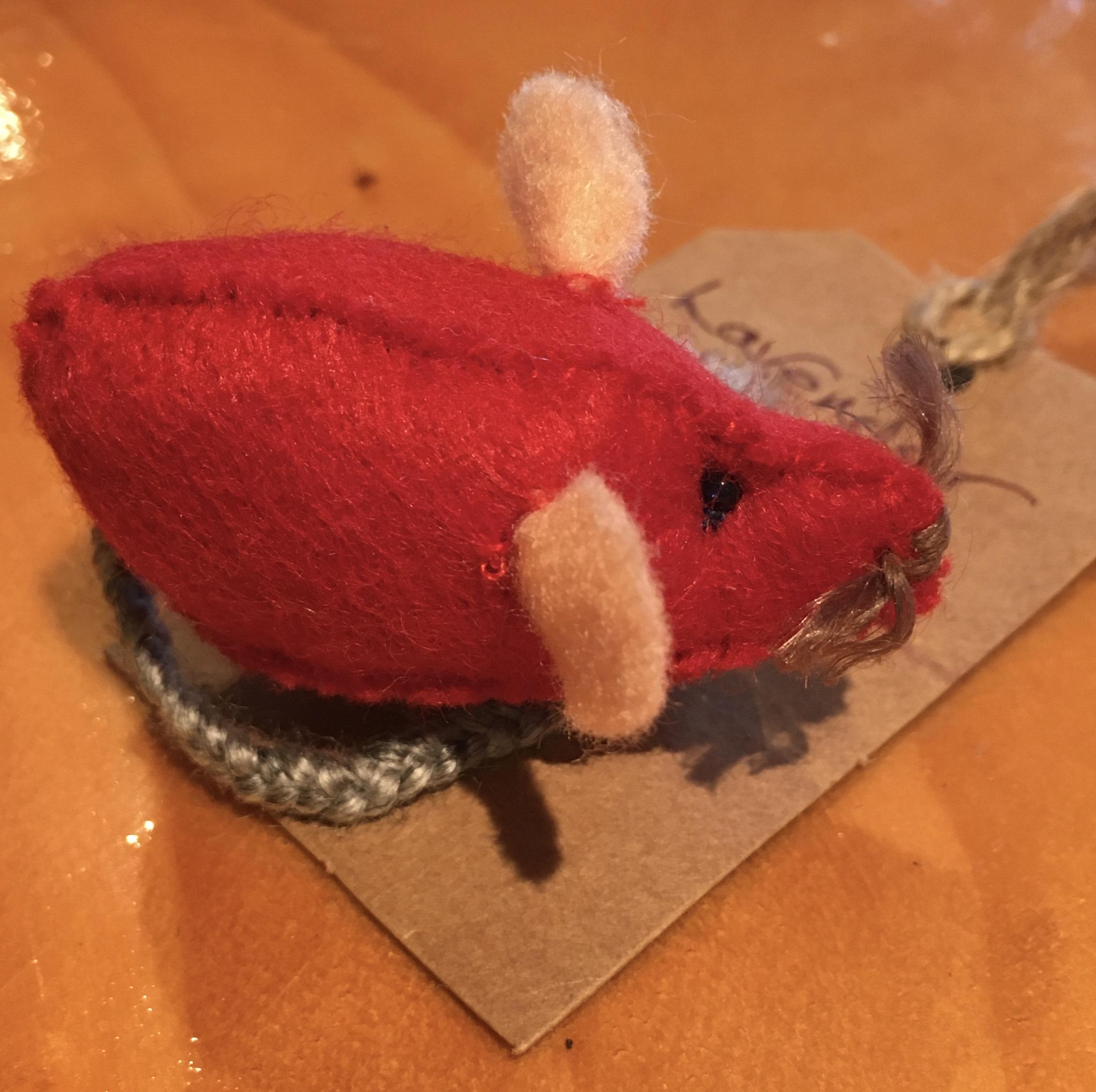 a sweet little felt mouse brooch, he has a plaited wool tail and seed bead eyes, he also has a brooch pin, and a little lavender inside