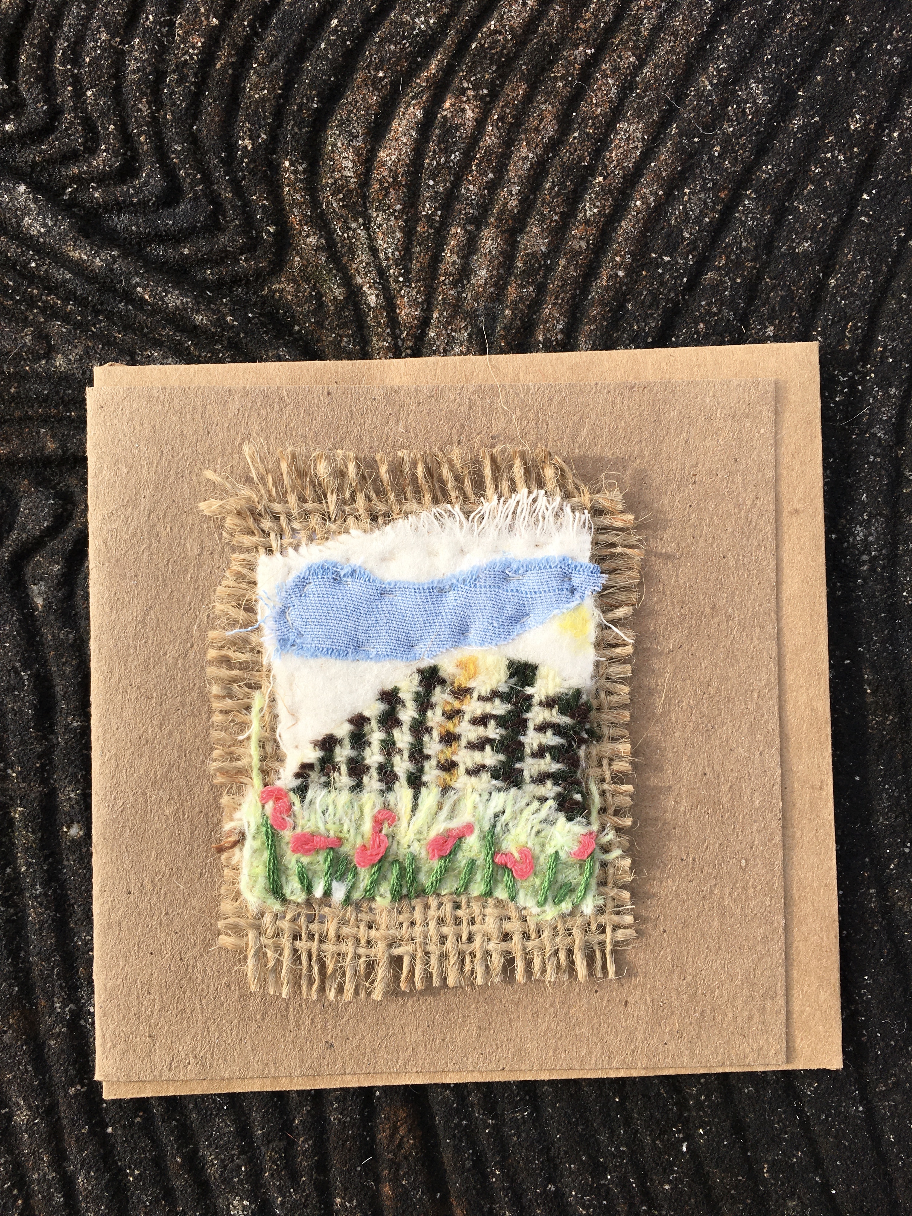 €3.50small recycled tapestry card, using recycled fabric and hand stitched. left blank inside. Dimensions: 4 in × 4 in × 0 inCards Leave this field blank