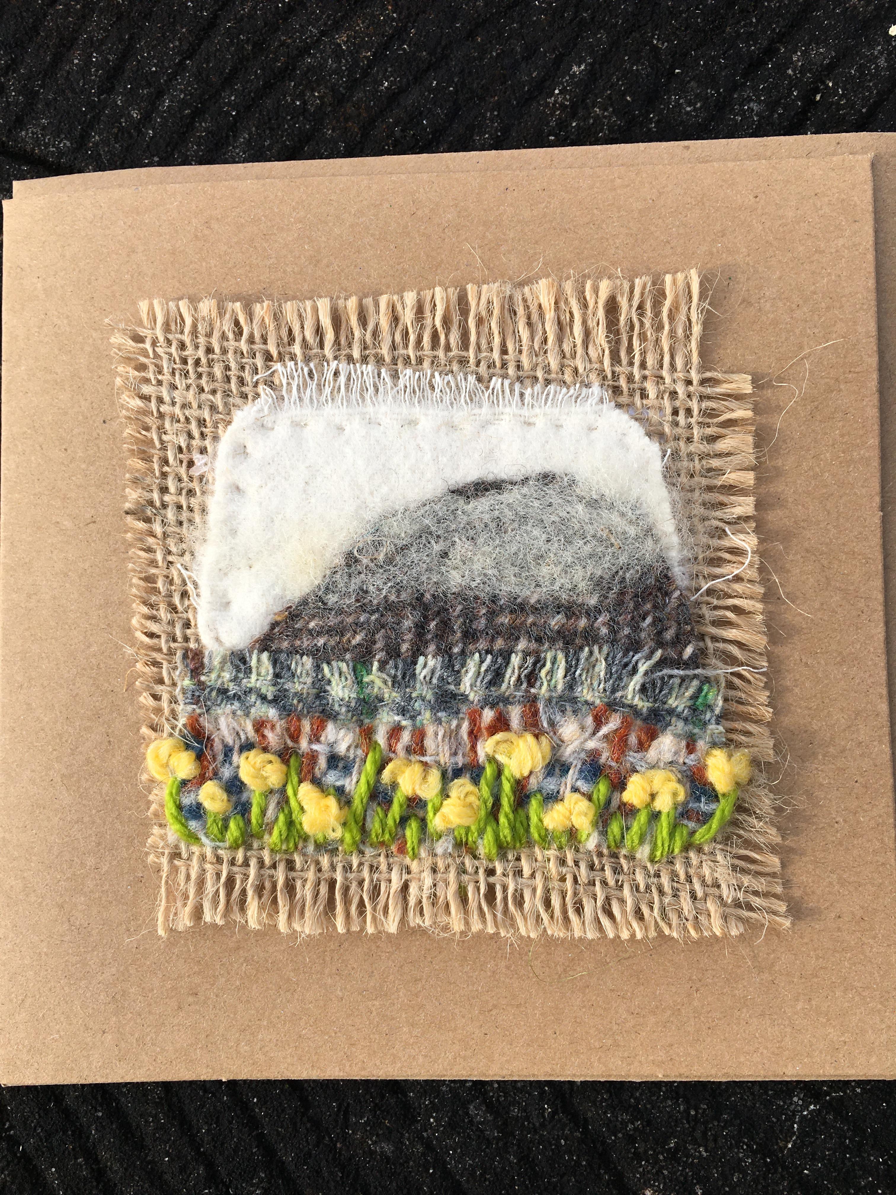 €5.50recycled card, tapestry using recycled fabrics, hand stitched. left blank inside Dimensions: 5 in × 5 in × 0 inCards Leave this field blank