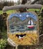 A small tapestry, using recycled wools and fabrics...the image strays from my usual "East Clare", to Quilty, a little seaside town in the beautiful county of Clare, it is a place i love, and where most of my driftwood comes from....(stormy seas bring forth lot's of goodies to the shores)