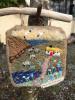 it has been created using recycled fabrics and wool, and the scene is all hand stitched.