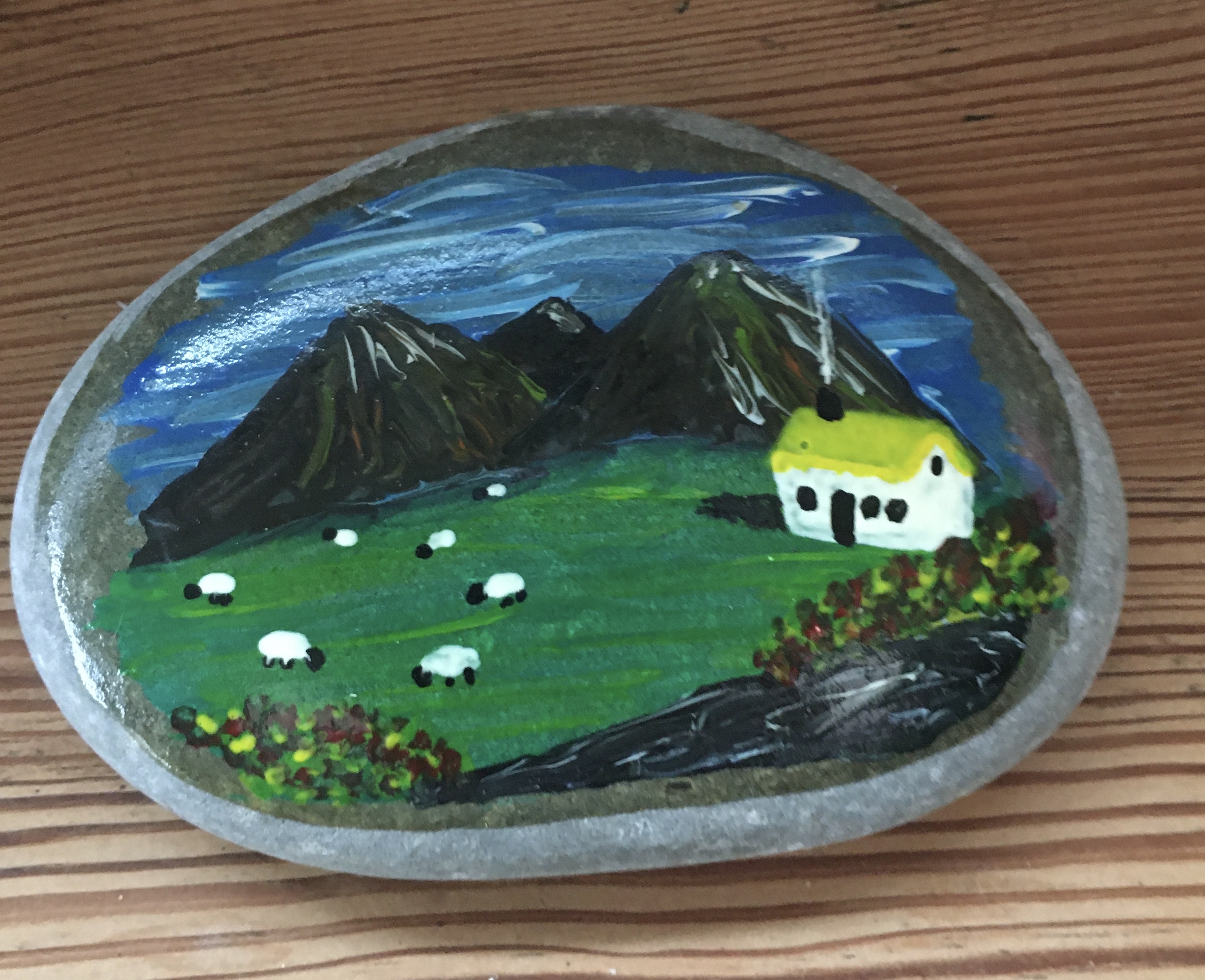 These stones and pebbles have been hand selected by me, then painted using acrylics, they depict scenes from around the "Burren" in county Clare.
