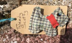 This coloured open weave tweed scotty is lovely, he is hand stitched and beautifully adorned with his glass beady collar