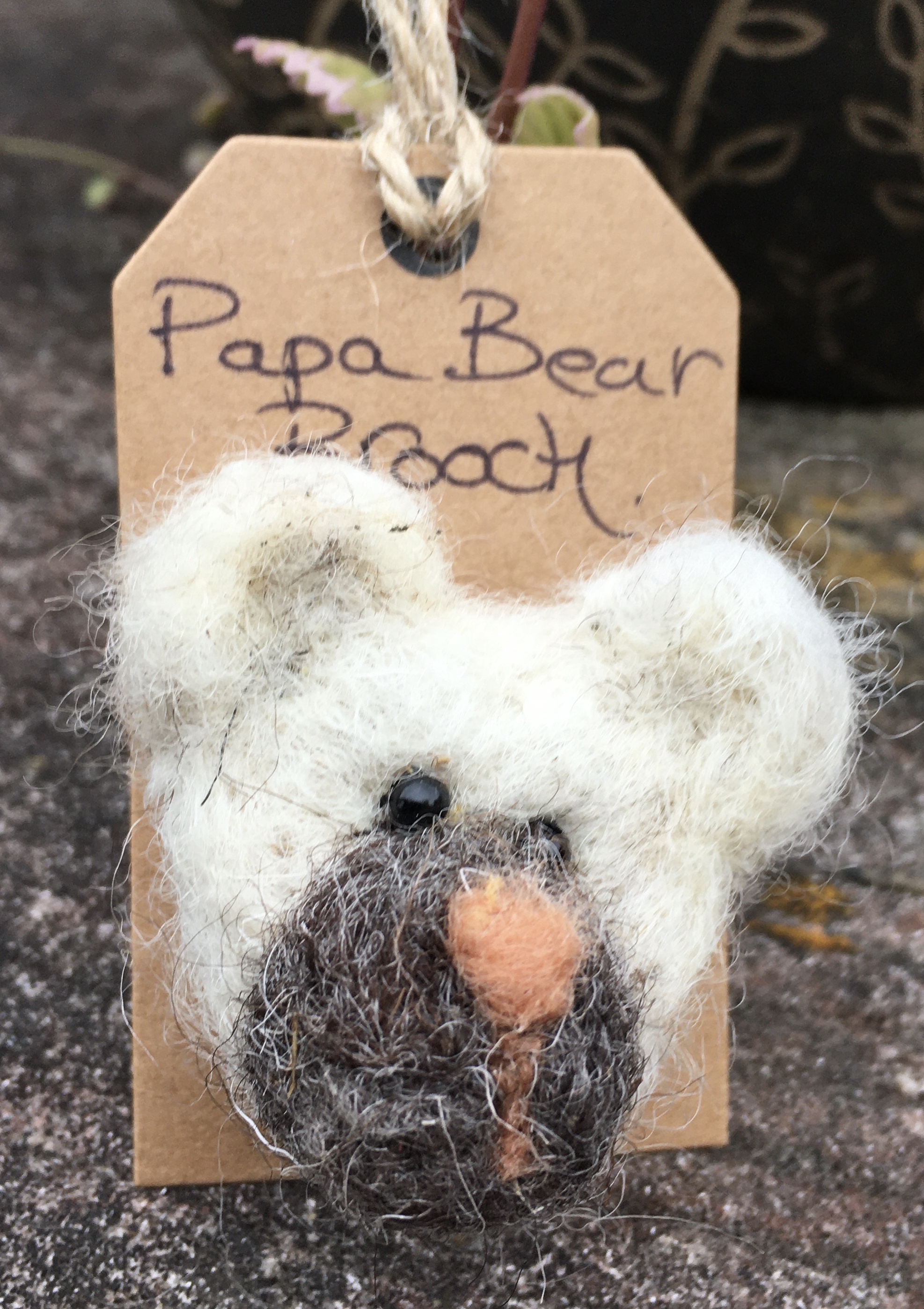 He’s lovely, made with raw sheep fleece, and little black beady eyes, he will look so smart on any jacket, and always bring a smile.