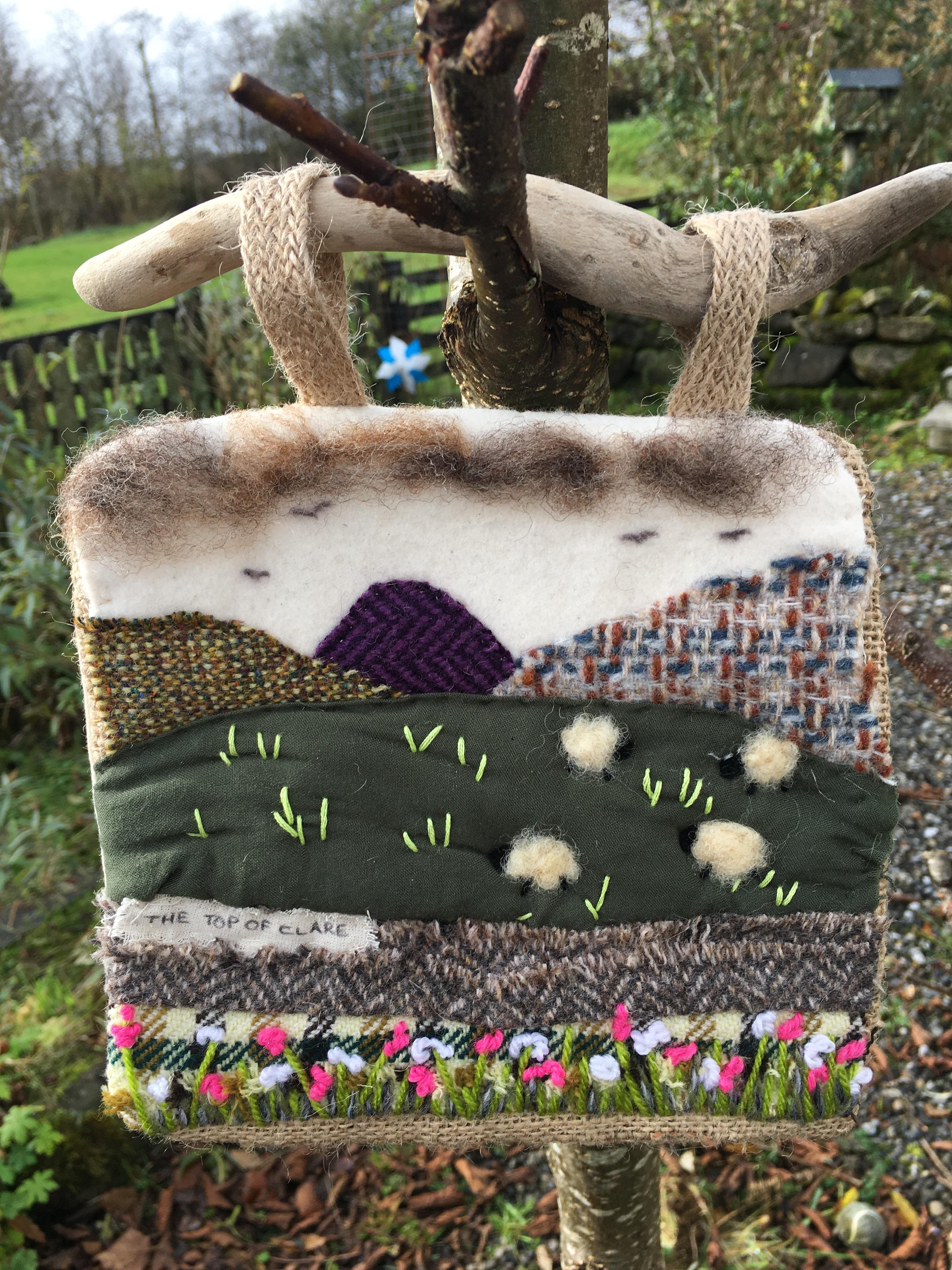 one of my tapestries, created using recycled fabrics and sheep fleece.