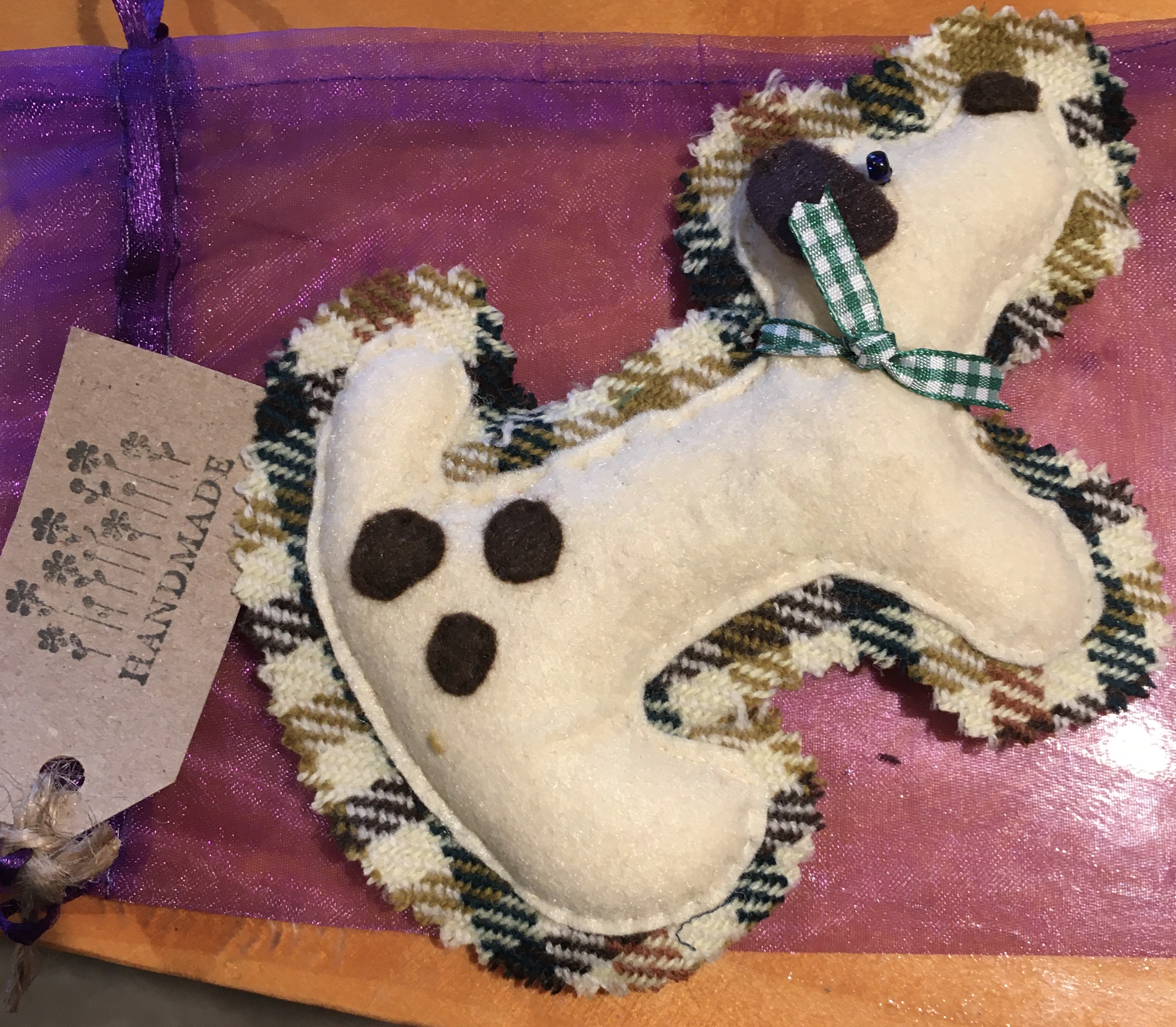 This is a lovely "Dog" scenter, the front is using felts and the reverse wool tweed, inside he has an ample amount of lavender, and to rejuvenate the scent just give him a squeeze.